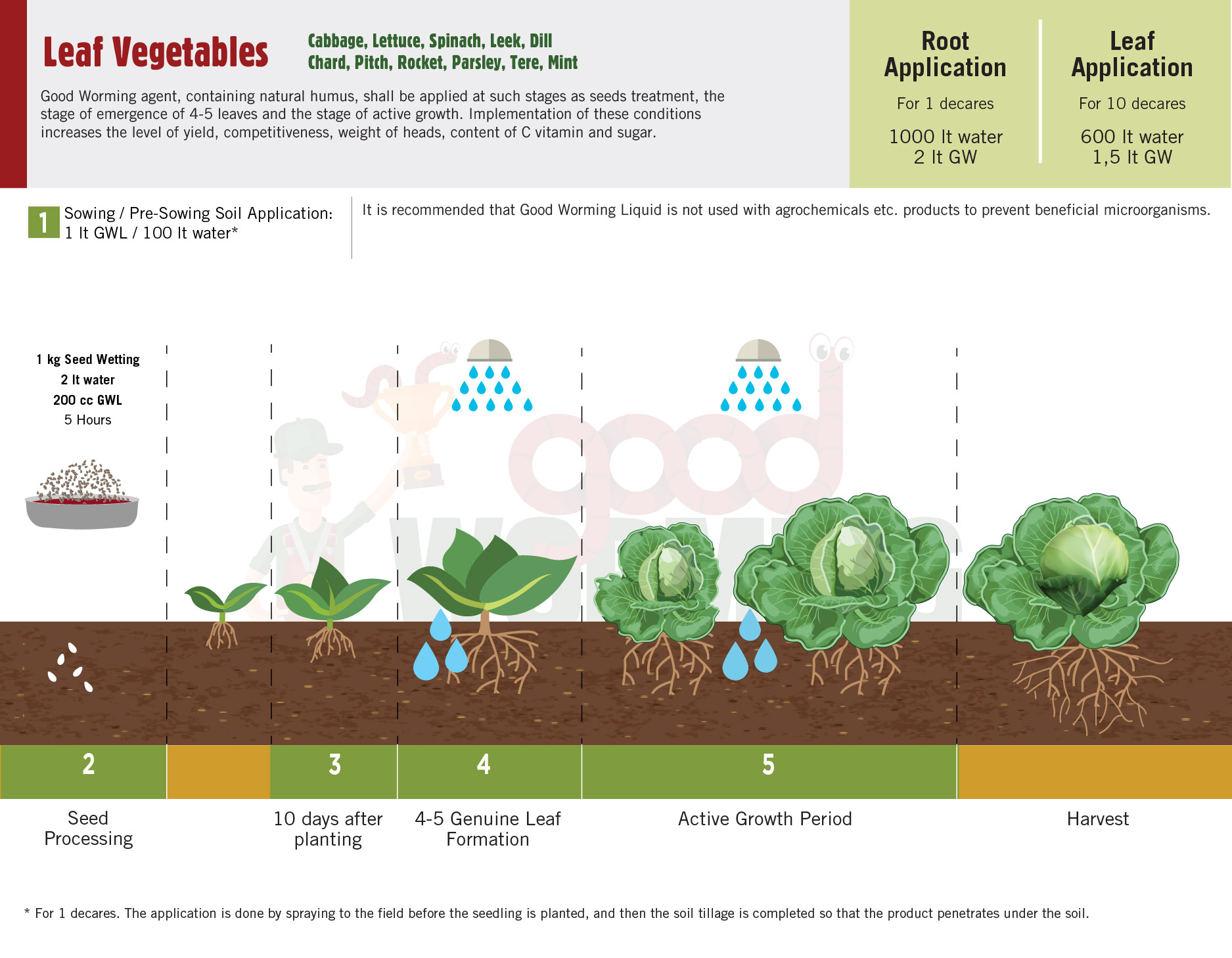 Good Worming agent, containing natural humus, shall be applied at such stages as seeds treatment, the stage of emergence of 4-5 leaves and the stage of active growth. Implementation of these conditions increases the level of yield, competitiveness, weight of heads, content of C vitamin and sugar.
