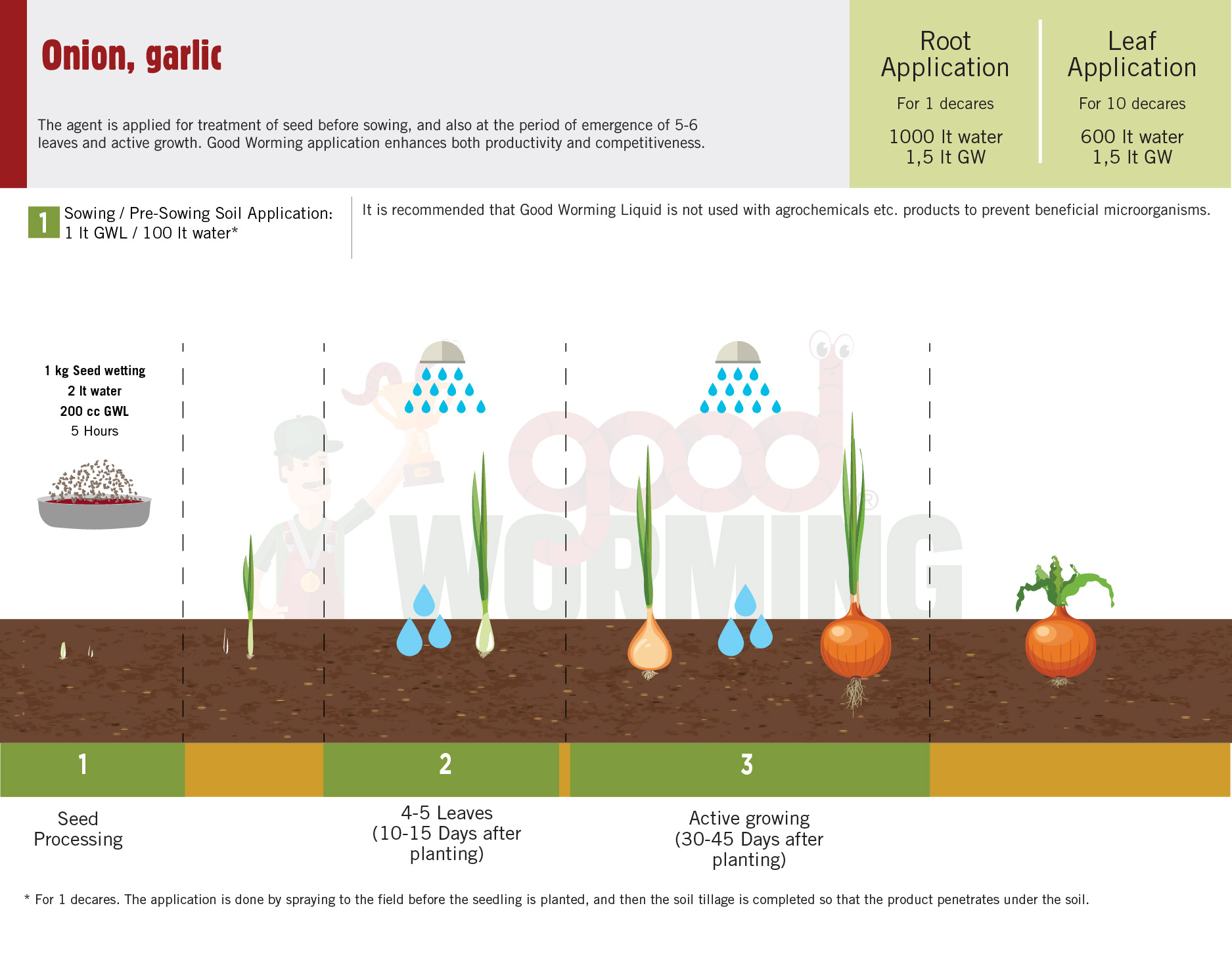 The agent is applied for treatment of seed before sowing, and also at the period of emergence of 5-6 leaves and active growth. Good Worming application enhances both productivity and competitiveness.