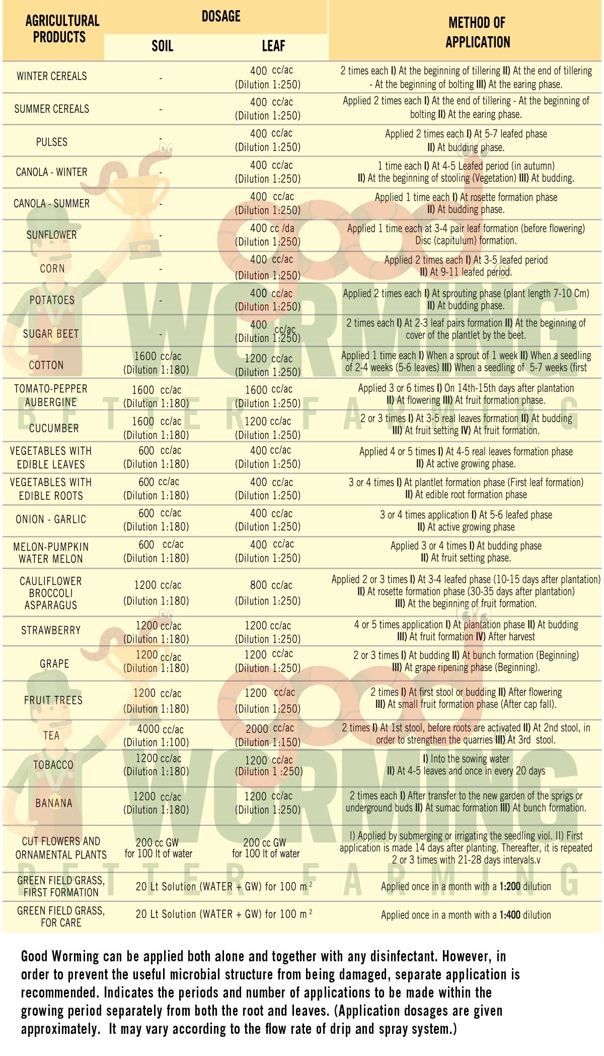 Seeds or seedlings have to be soaked for a specified period in a Good Worming solution prepared in the appropriate ratio.